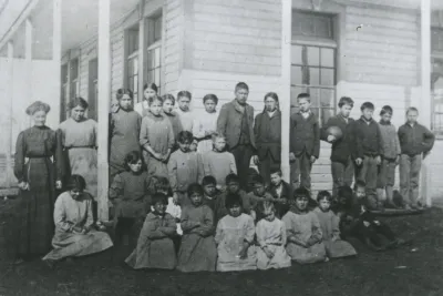 Gladys (far left) as a teacher at St. Barnabus Anglican Mission School in Onion Lake in 1912. PAS Photo R-A17705.