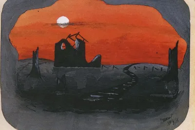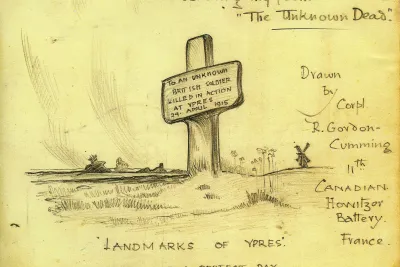 Gladys’ wartime records include diaries, photograph albums, an autograph book, and audio recordings of her reminiscences. The sketches and written entries in her autograph book (R-E1395) were made by the soldiers she cared for while in Europe.