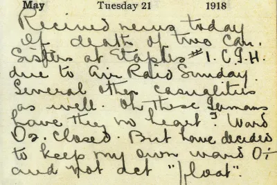 Gladys recorded the deaths of two Nursing Sisters during an air raid at Étaples, France on May 19, 1918. PAS Photo R-E1395.