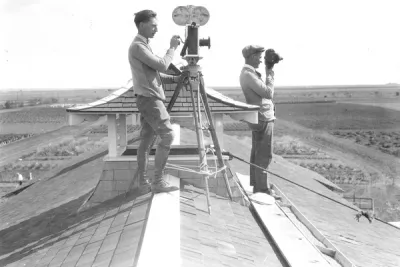 Dick Bird and Ted Nix (?) running motion-picture cameras, ca. 1920. PAS Photo R-A5102.