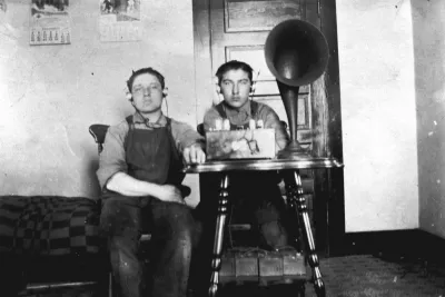 Frank & Jim Bentley listening to a Westinghouse 5-tube radio, 1926. PAS Photo S-B188