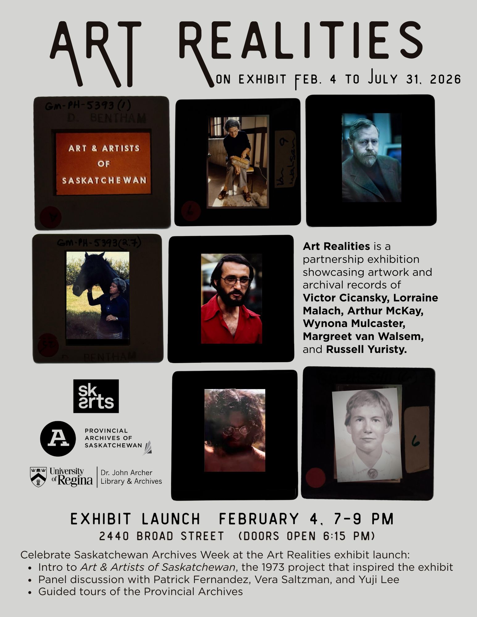 The Provincial Archives of Saskatchewan, SK Arts, and the University of Regina Archives & Special Collections are launching a joint exhibit during Archives Week, on February 4.