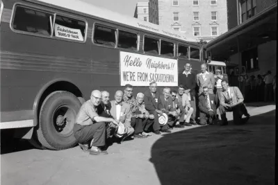 Board of Trade delegates preparing to leave Regina for a tour of Montana, 1957. PAS Photo 57-234-01.