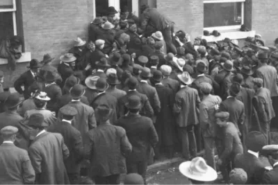 Ruée vers le bureau fédéral des titres fonciers à Prince Albert, vers 1909. PAS Photo R-A4557-2.