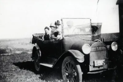 La famille A.N. Bourassa dans la première automobile achetée à Laflèche (1927). PAS Photo R-A10110.