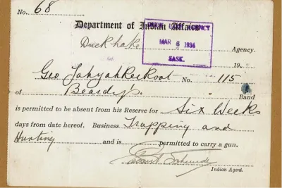 Study samples of original reserve passes while considering the impact of the reserve pass system on First Nations communities, on treaty relationships, and on basic human rights.