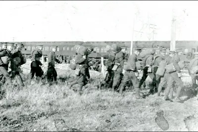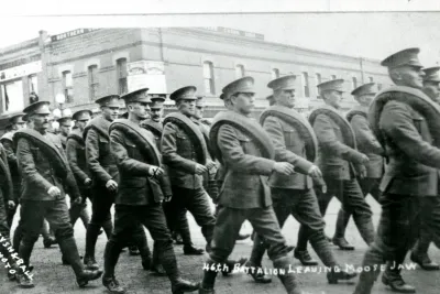 The 46th Battalion leaving Moose Jaw for the War, ca. 1915. PAS Photo R-A32277-1.